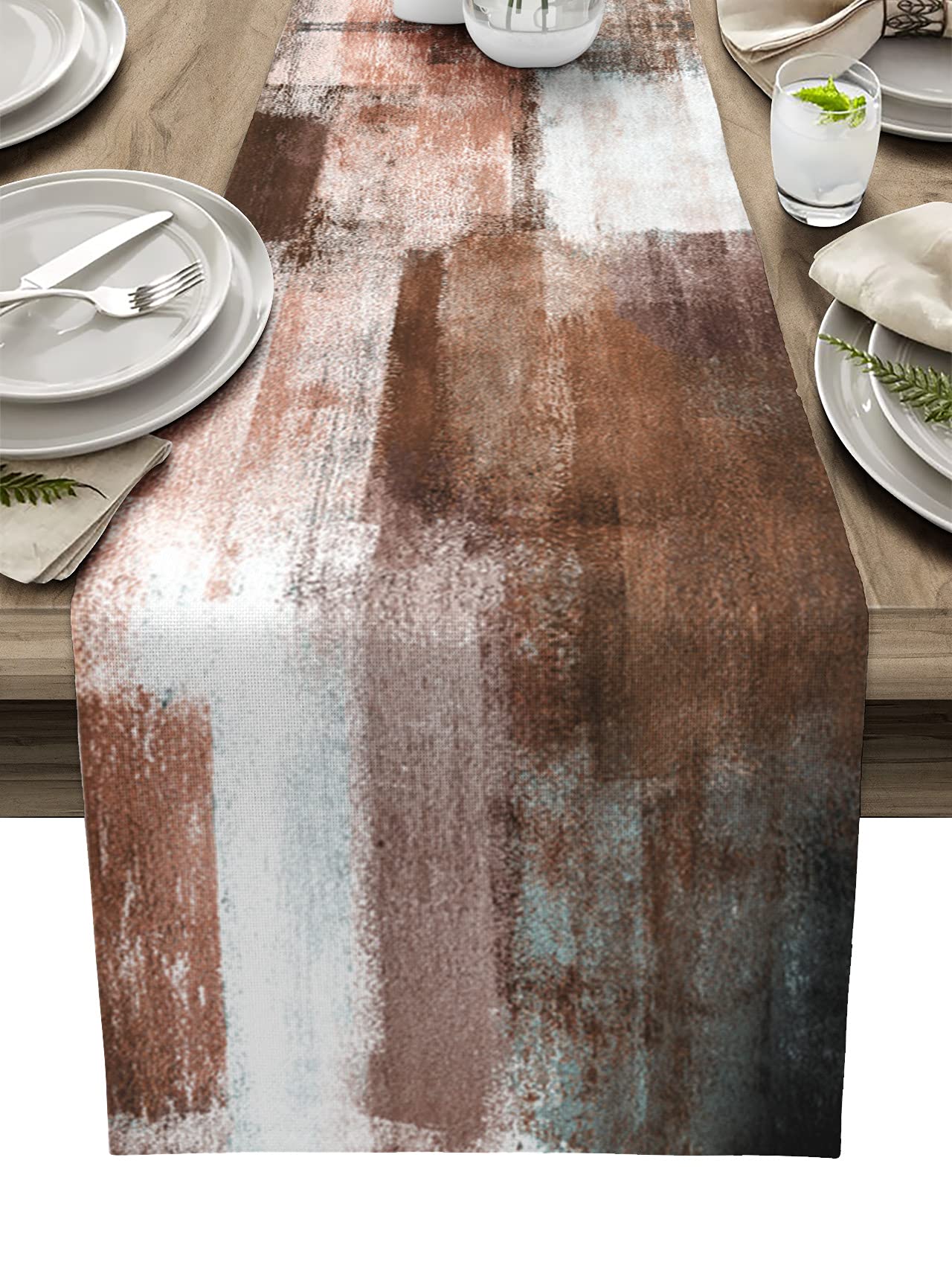 Amazon Com Dining Table Runner 60 Inches Long Brown Burlap Table Runner Kitchen Coffee Table Runners Decoration For Indoor Outdoor Holiday Party Dresser Abstract Geometry Graffiti Style Hogar Y Cocina